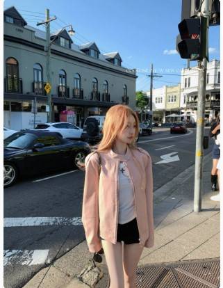 COOLLINE林子熙 伦敦往事 店主挚爱 粉色极简皮衣外套女咖色夹克