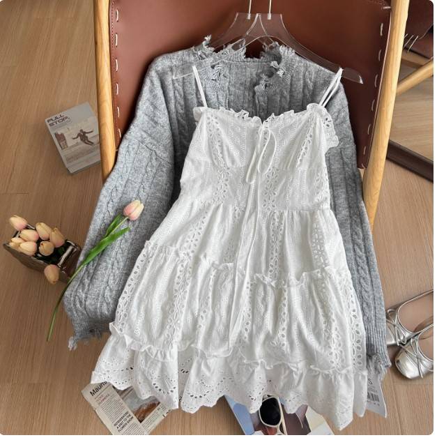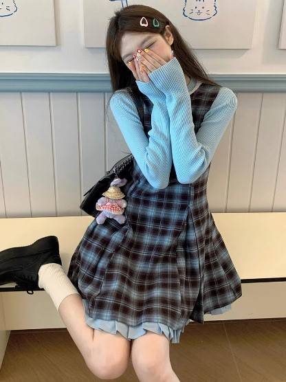 韩系学院风早秋穿搭套装2024新款小个子A字连衣裙chic甜辣两件套