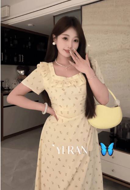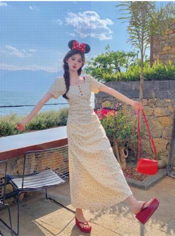 大码法式荷叶边连衣裙女夏季收腰显瘦包臀长裙微胖MM短袖碎花裙子