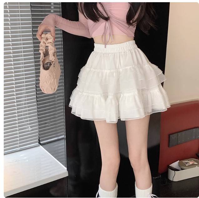 半身裙女秋冬新款芭蕾风白色蛋糕短裙仙女网纱蓬蓬裙蕾丝A字裙子