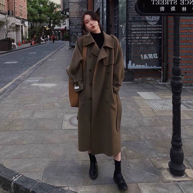 2020年秋冬新款韩版双面呢手缝长款羊毛大衣单排扣中长款毛呢外套