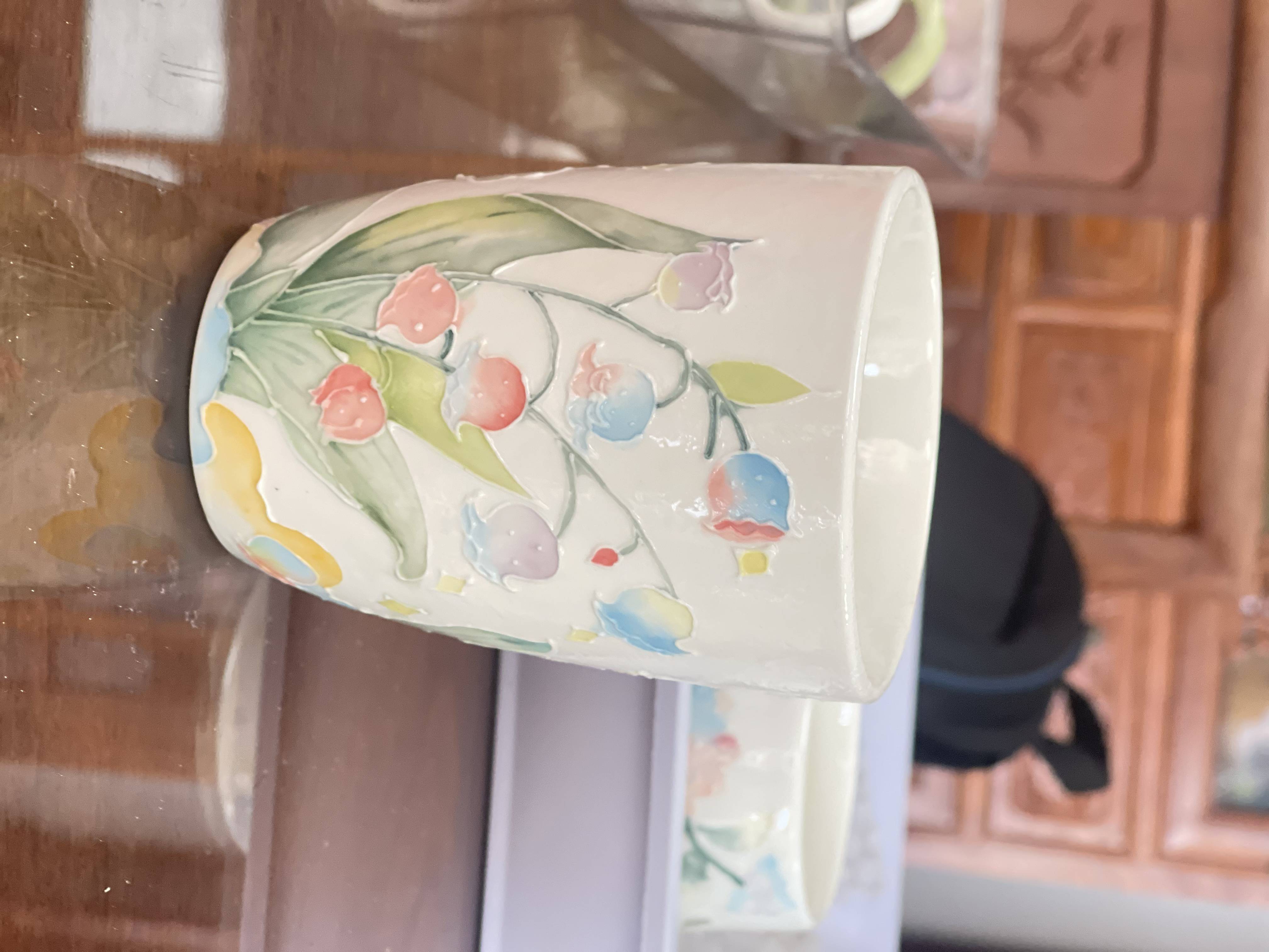 立体手绘陶瓷杯子,釉下彩手绘铃兰花杯高温高白瓷