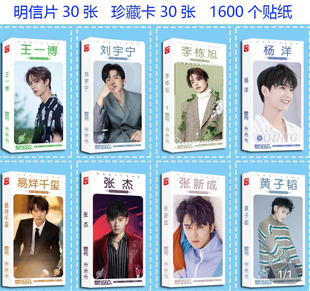 新款340张王一博分享套装明信片 人气男明星粉丝珍藏小卡片贴贴纸