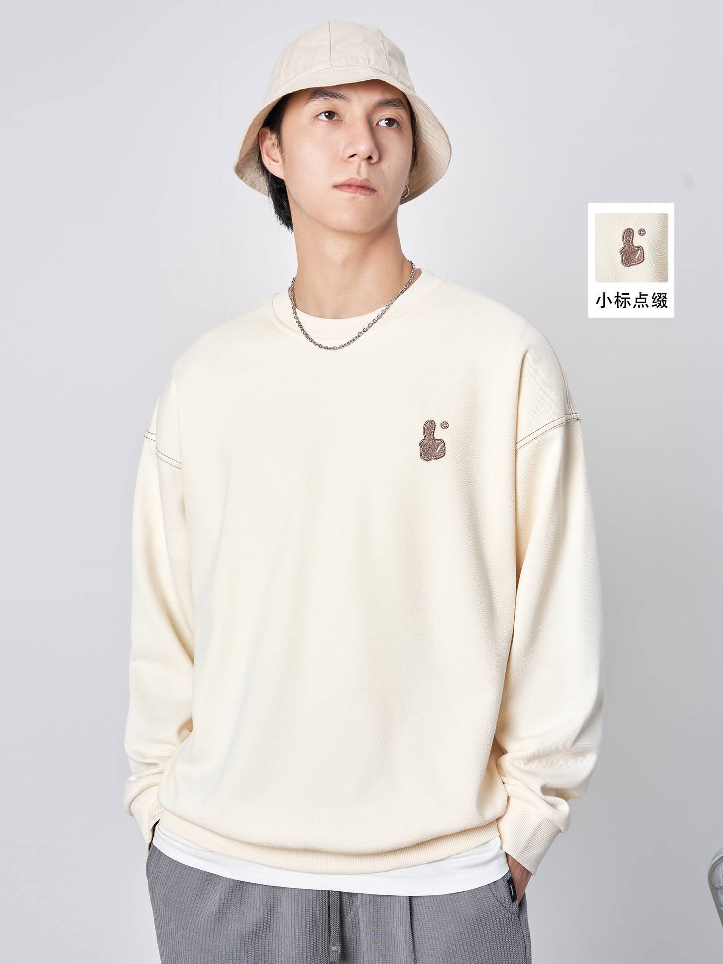 亦止男装初秋空气层圆领卫衣男新款2022都市简约刺绣长袖男士上衣