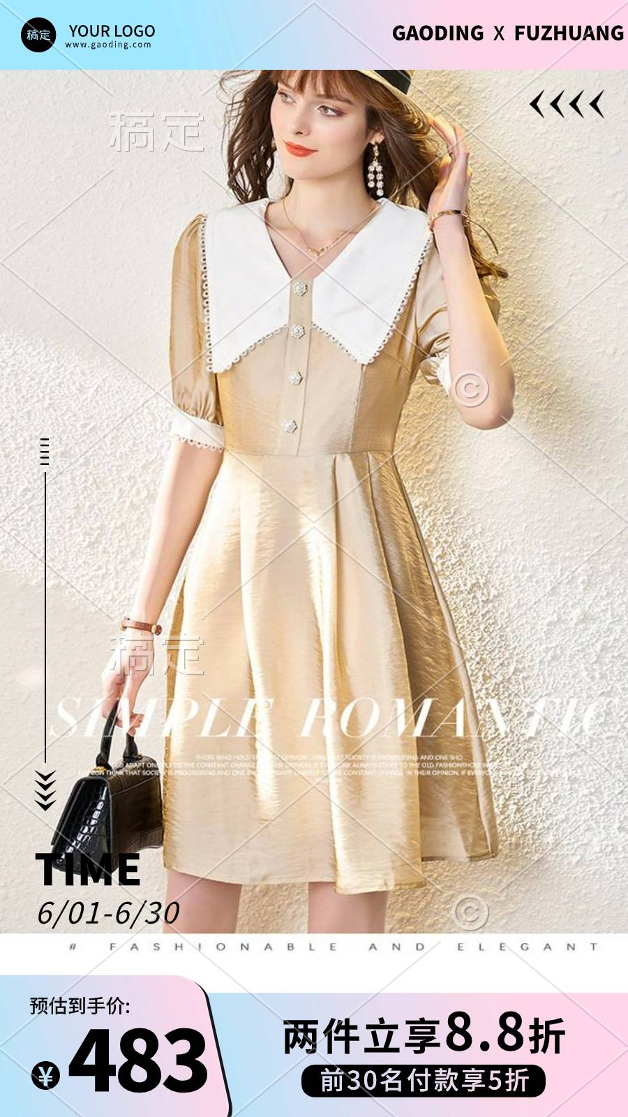 欧货时尚洋气娃娃领连衣裙女2021年夏季新款 气质收腰泡泡袖a字裙