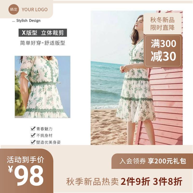 显瘦连衣裙 2020夏季新款女装碎花喇叭袖气质轻熟印花裙