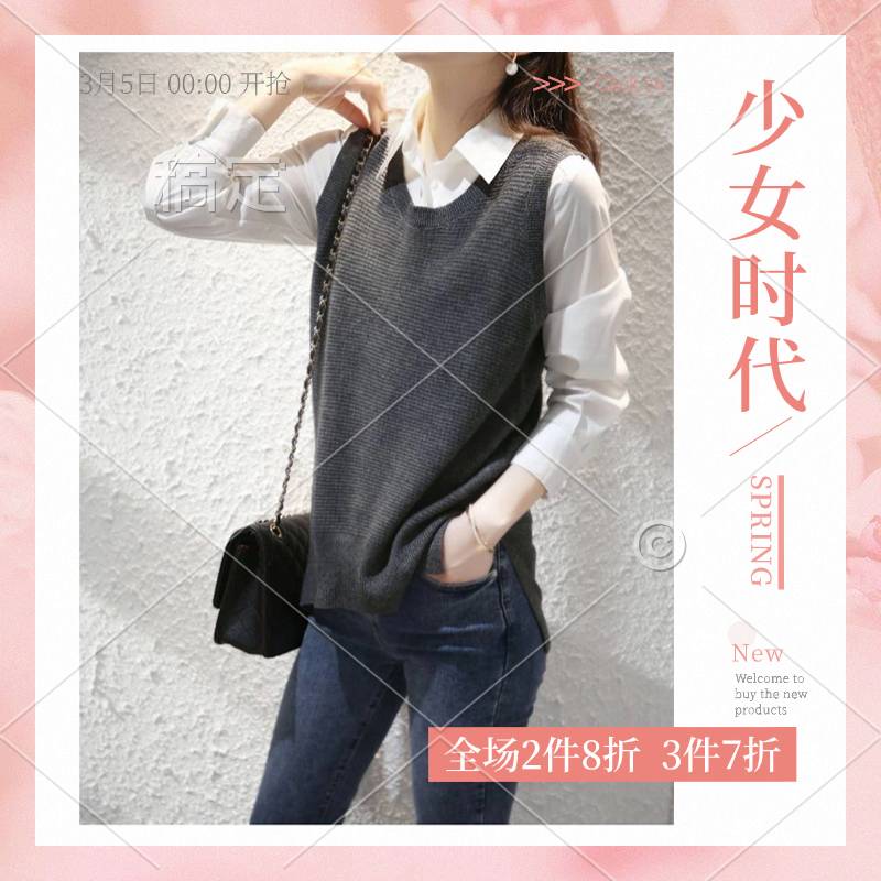 清新甜美高腰A字裙两件套2019秋冬新款针织连衣裙女装时尚套装