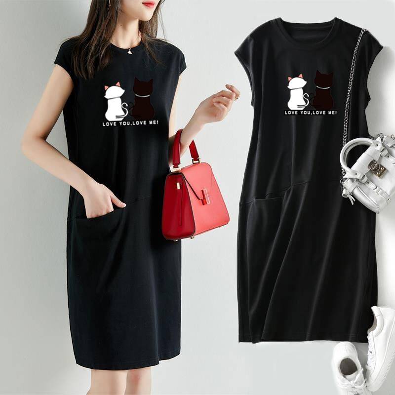 2023夏季新流行宽松显瘦印图T恤连衣裙女装韩版中长款仙女裙女潮