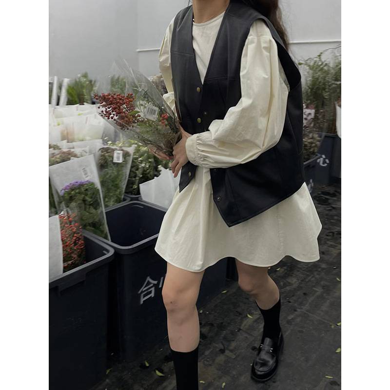 元派 bluepops春季2023新款中长款连衣裙韩版宽松圆领套头衬衣裙