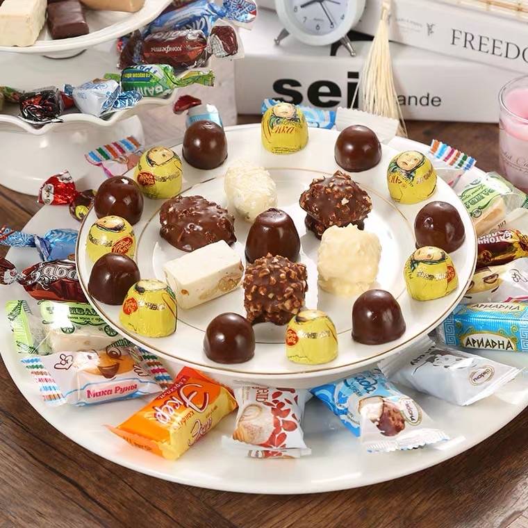 俄罗斯糖果混合散装巧克力夹心水果硬糖休闲零食