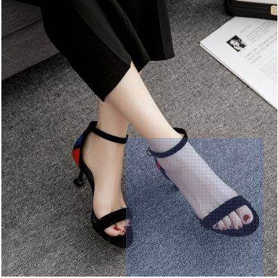 高跟鞋女细跟凉鞋露趾一字带百搭夏季小清新猫跟chic女鞋2018韩版