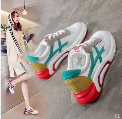 网红透气小白鞋夏季女2018新款百搭韩版厚底内增高女鞋网面板鞋女