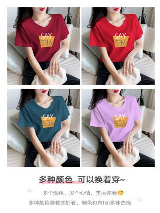 黑色短袖女t恤夏装2020新款韩版半袖胖mm宽松v领上衣纯棉百搭体恤