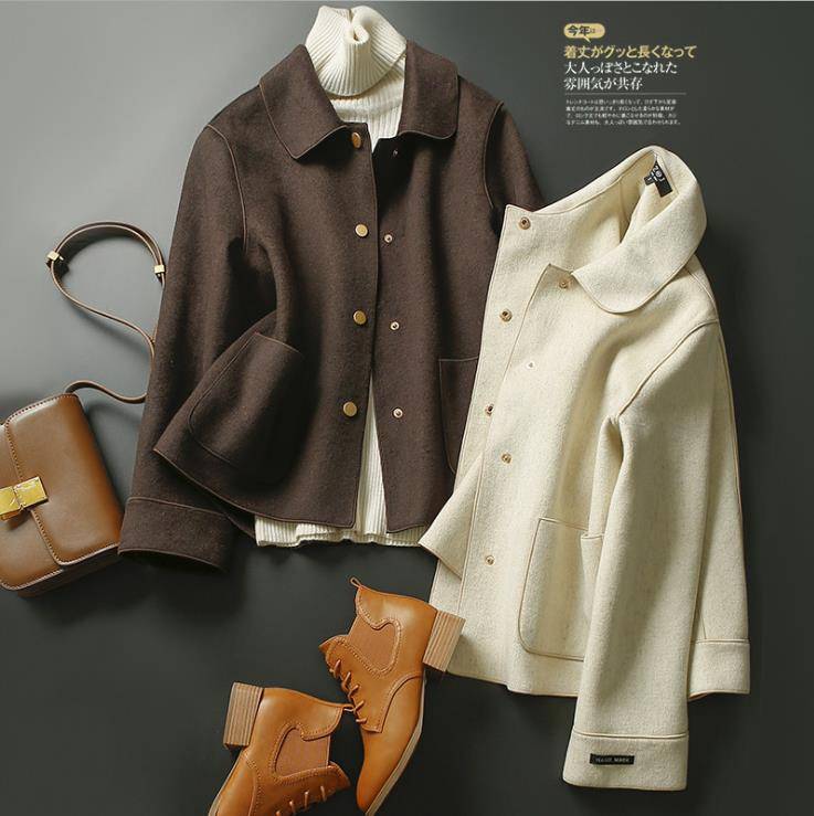 ZOJ品质双面羊毛呢外套女短款小个子毛呢大衣女2021秋冬女装新款