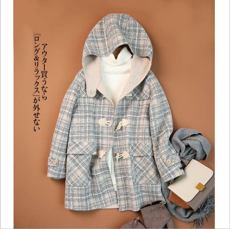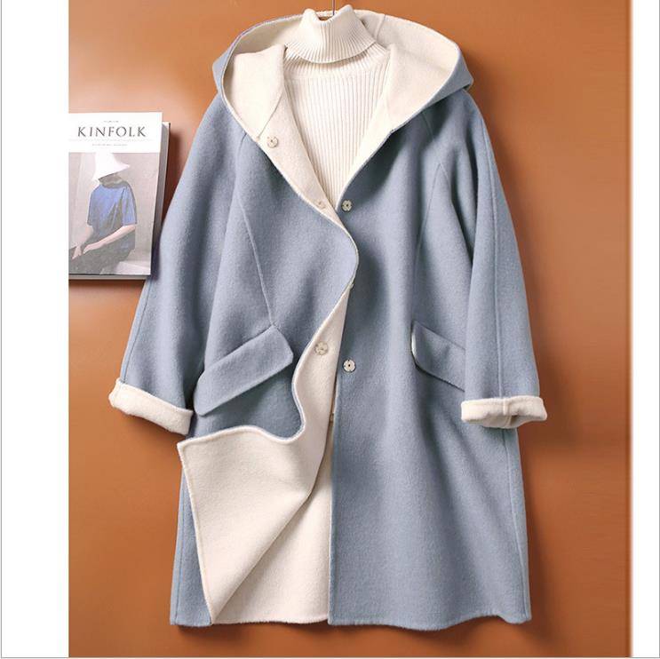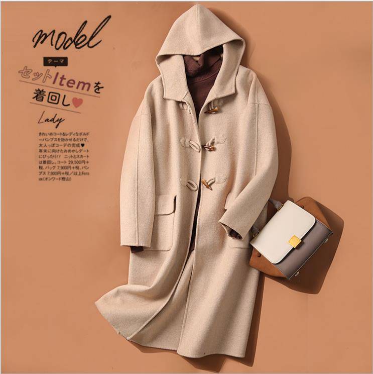 品质手缝羊毛呢大衣女时尚连帽大衣外套女2021秋冬新款日系女装供