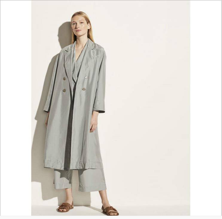 风衣秋季女高品质风衣女真丝长风衣外套双排扣风衣女气质女装