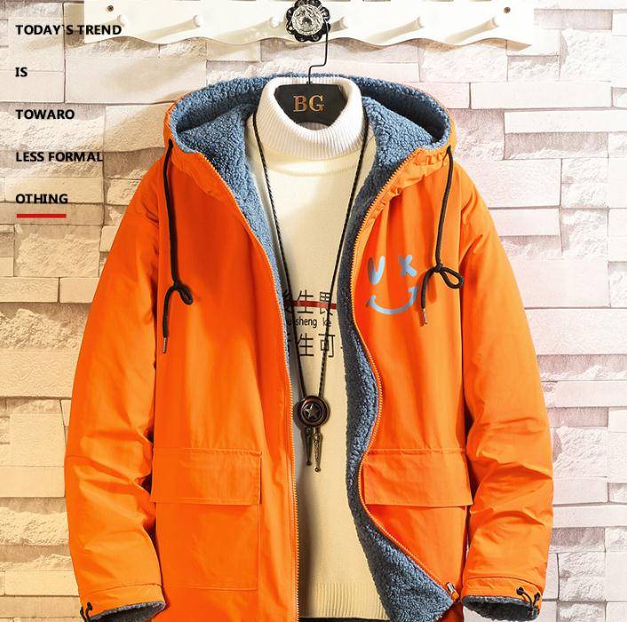 秋冬季拼接羊羔毛棉衣男潮流韩版宽松双面穿夹克加厚颗粒绒外套男