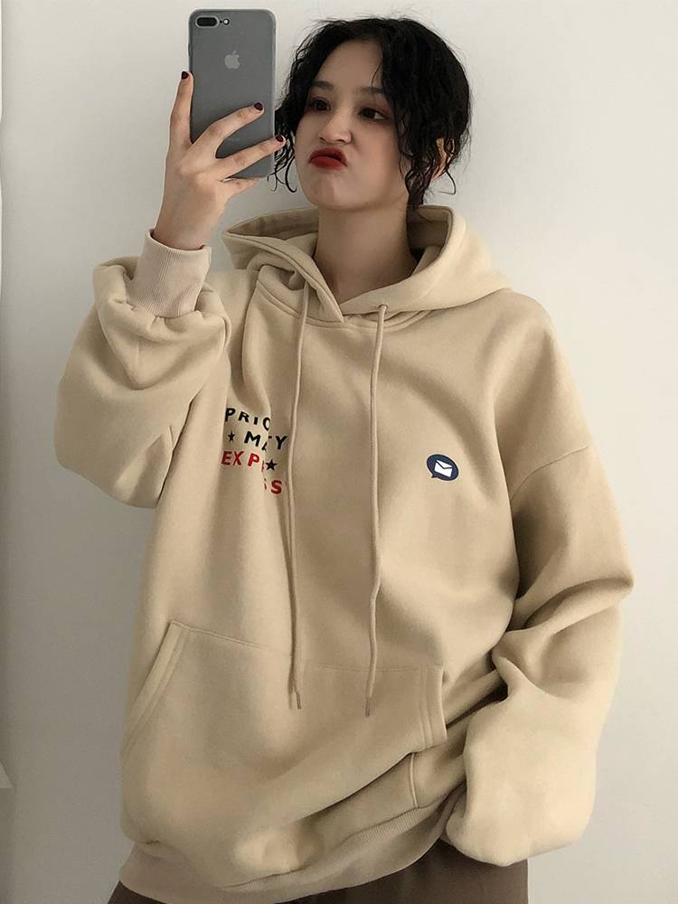 韩版慵懒风ins超火原素风短外套宽松bf套头连帽加绒卫衣