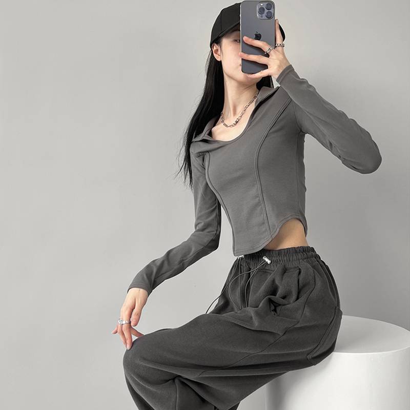 美式洋气甜辣设计感短款上衣女春高级感鱼尾修身辣妹内搭小众t恤