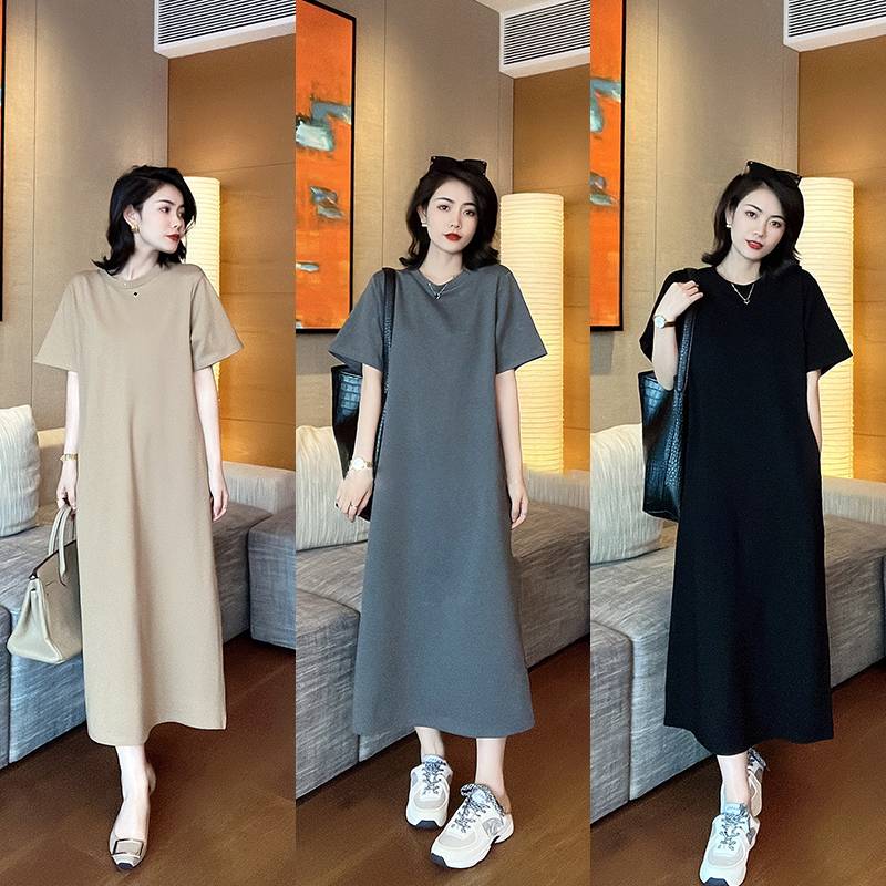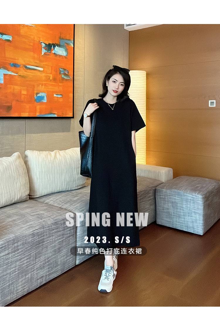 现货]韩版短袖T恤裙女装宽松休闲中长款ins连衣裙2023年春夏新款