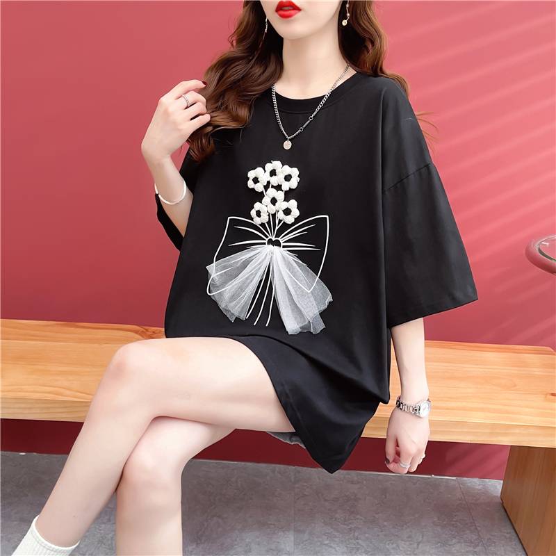 实拍实价6535拉架棉中长款大码短袖t恤女夏装韩版宽松半袖上衣