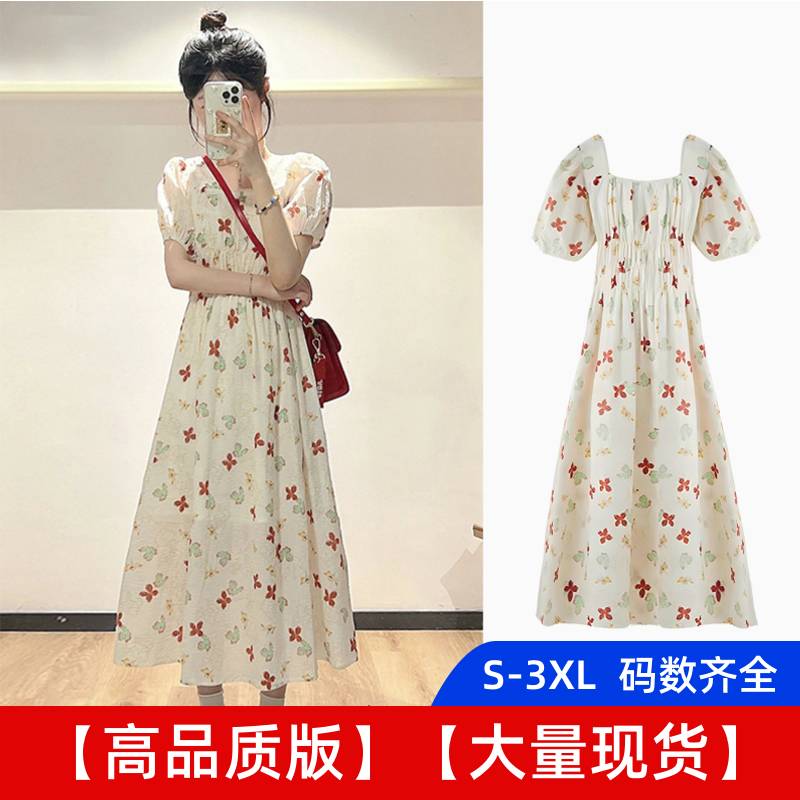 小个子高级感2023年新款别致绝美漂亮收腰长裙碎花连衣裙子女夏季