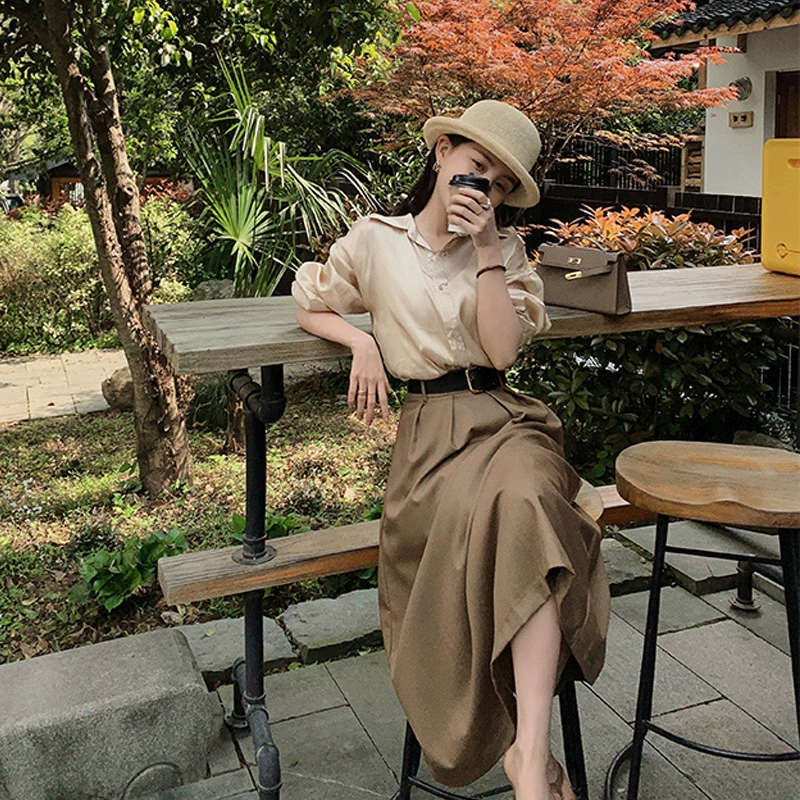 春季新款女装轻奢冷淡风级感套装法式名媛气质长裙衬衫连衣裙子