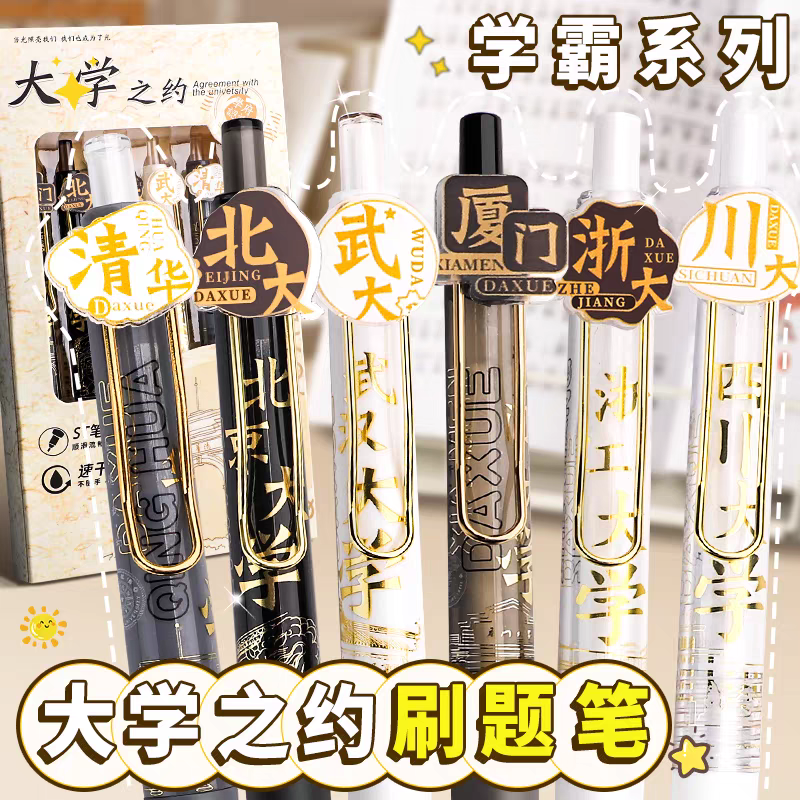 大学之约系列按动式中性笔st笔头学生名校刷题笔高颜值速干考试专用黑笔签字水笔圆珠笔联名清华北大盲盒文具