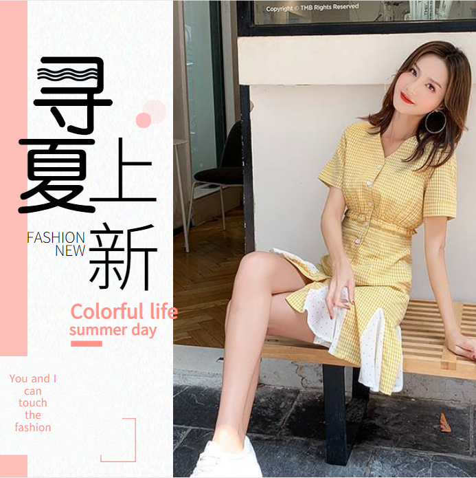 格子吊带裙2023新款chic连衣裙女夏季露肩收腰显瘦裙子