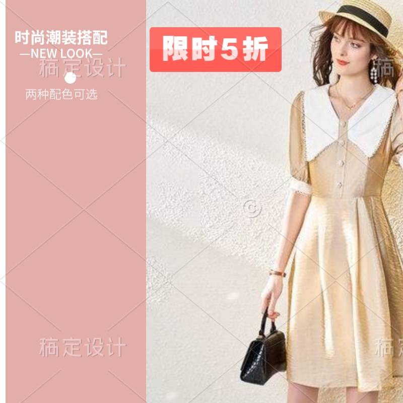 欧货时尚洋气娃娃领连衣裙女2022年夏季新款 气质收腰泡泡袖a字裙