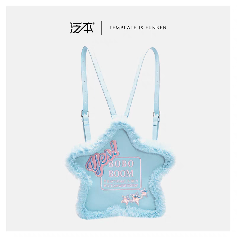 2024潮流原创女包五角星系列毛边双肩包斜跨单肩DIY镭射新品海蓝