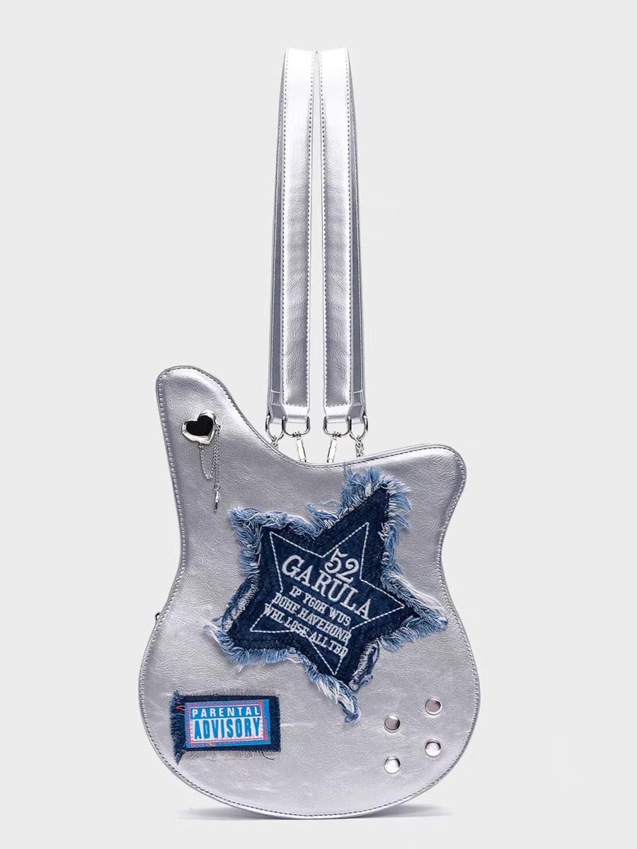 2024新品潮流原创设计牛仔吉他双肩包休闲创意五角星流苏字母贝斯斜挎包