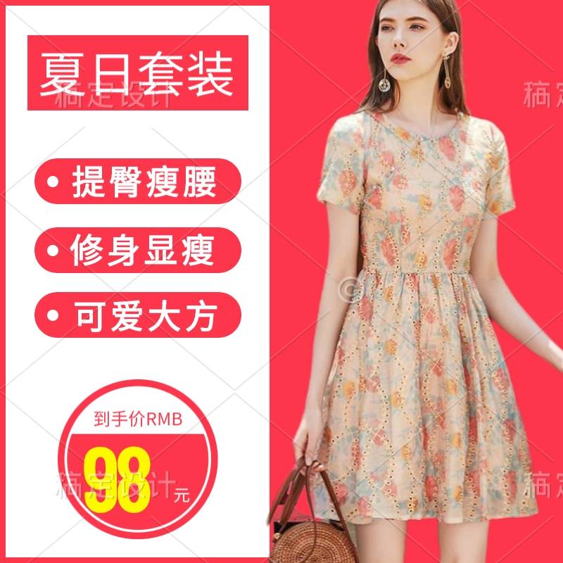 法式复古时尚连衣裙2022夏季新款女装气质百搭收腰显瘦印花裙子女