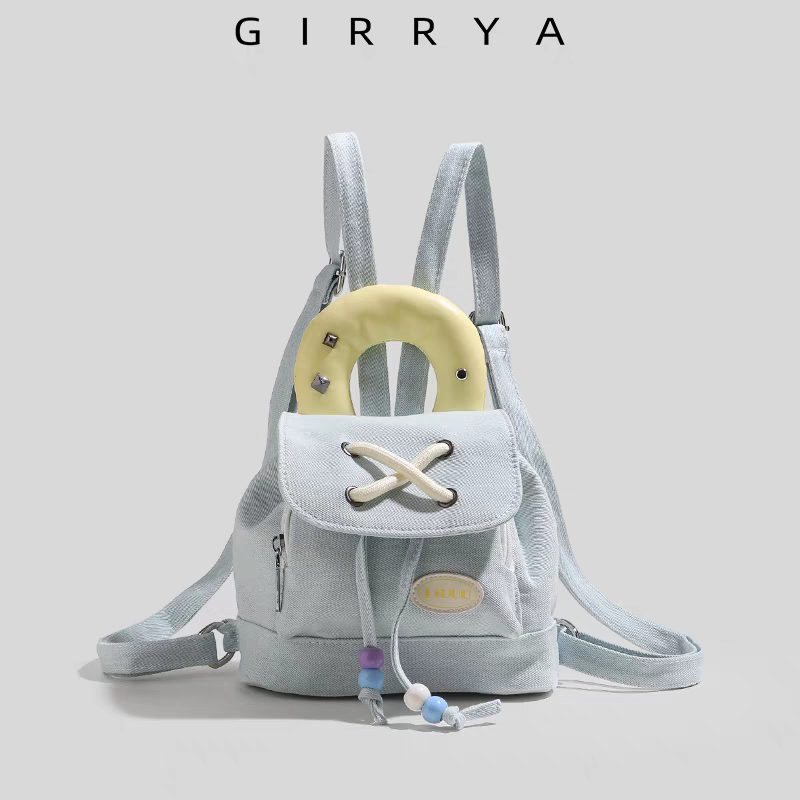 GIRRYA夏天休闲百搭蝴蝶结牛仔布小背包2024新款外出旅行可爱潮流双肩女包