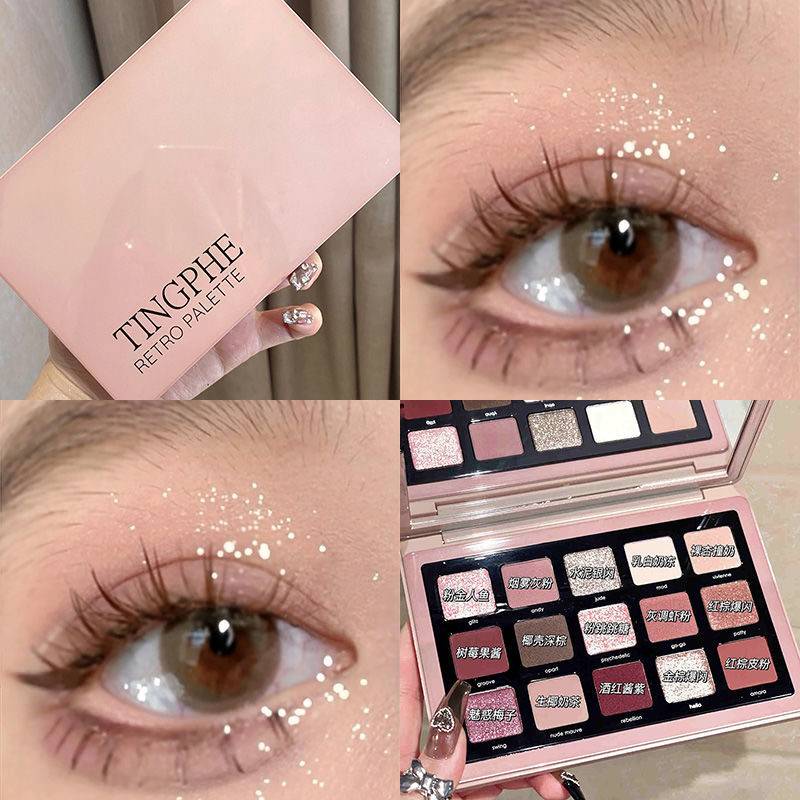 2023年新款正品15色眼影盘珠光哑复古蔷薇娜塔莎同款水泥盘易上色