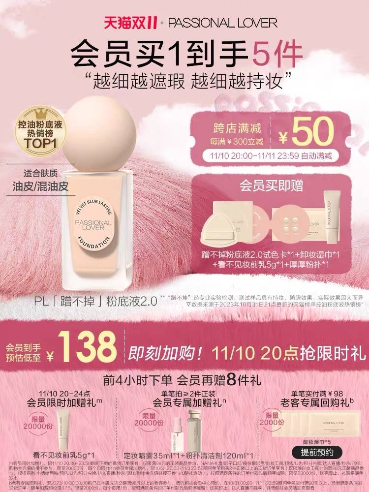 【双11抢先加购】PL蹭不掉粉底液2.0油皮持久不脱妆控油底妆