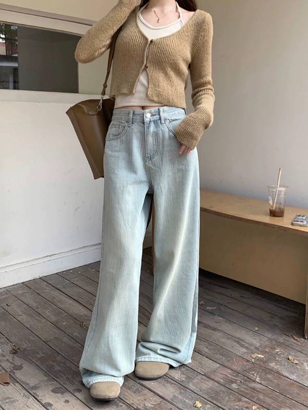 复古做旧水洗直筒牛仔裤女夏季高腰宽松阔腿裤拖地裤长裤子潮