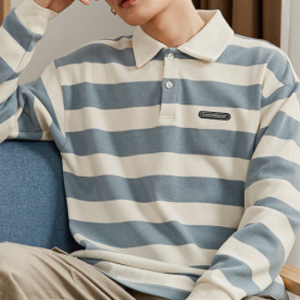 秋季新款长袖T恤男青少年条纹翻领纯棉polo打底衫学生潮