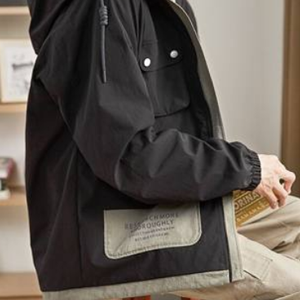 拼接外套男港风帅气工装外套韩版潮流休闲连帽夹克