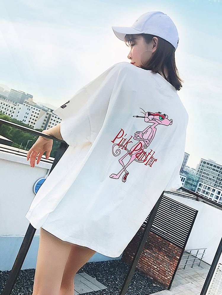2018夏新款bf风下身失踪网红同款女粉红豹短袖 大t恤宽松冰丝上衣