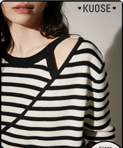 阔色小众黑白条纹修身针织衫女2022新款早秋长袖设计感毛衣上衣