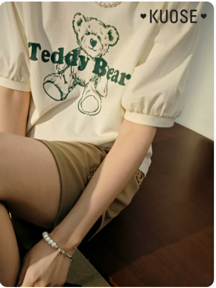 阔色泡泡袖可爱正肩T恤女2022新款夏季宽松显瘦纯棉短袖灰色上衣