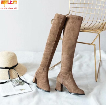 高筒靴女2018新款秋冬弹力过膝长筒靴女粗跟高跟尖头少女瘦瘦靴子