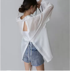 女生青春元气百搭显瘦露背薄衬衫