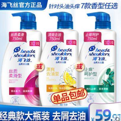 宝洁海飞丝柔顺去屑洗发水液露止痒清爽控油男女家庭大瓶装750ml