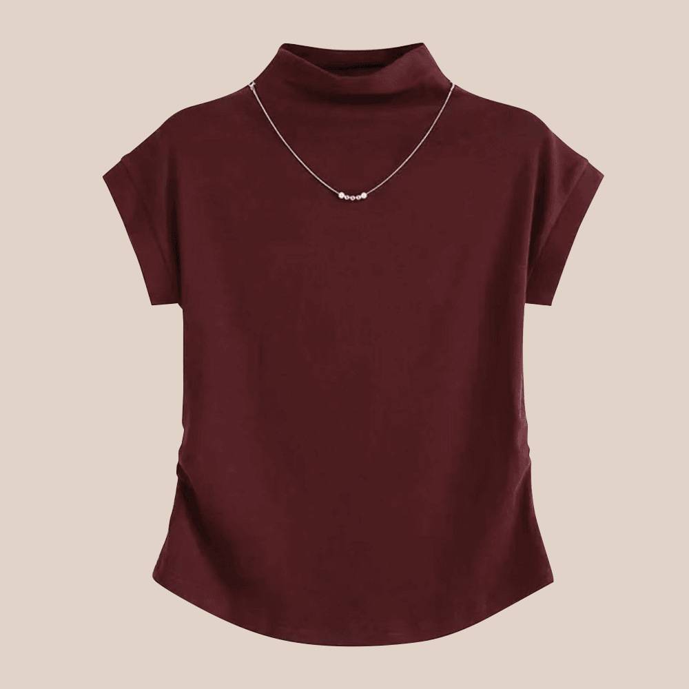 2024女装新款上衣半高领女士t恤 女短袖秋季气质正肩飞袖收腰显瘦