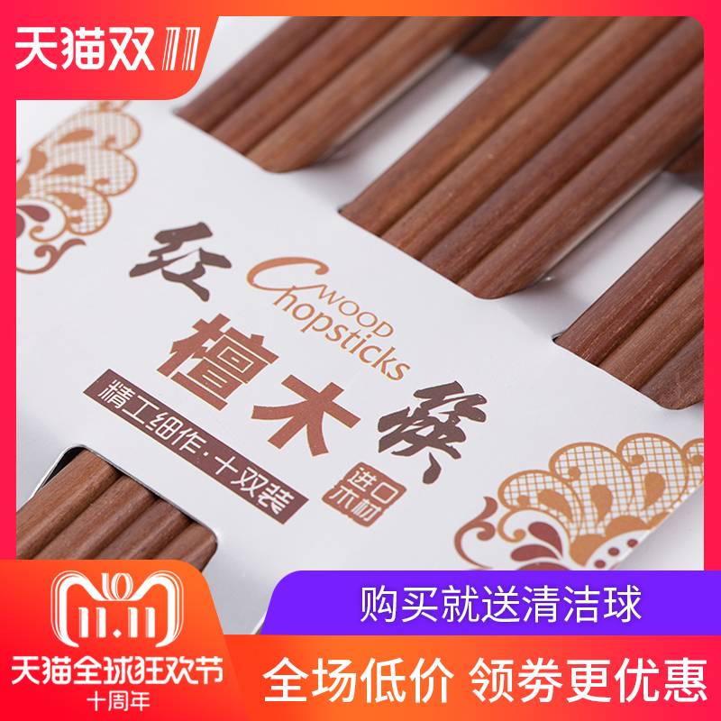 实木红檀木筷子套装快子家用家庭装10双红木筷子无漆无蜡木质防滑