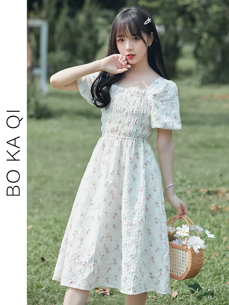 夏新款小清新碎花短袖雪纺衬衫女洋气学生港风度假上衣