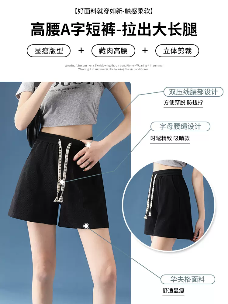 运动短裤女夏季薄款黑色a字高腰宽松休闲阔腿裤