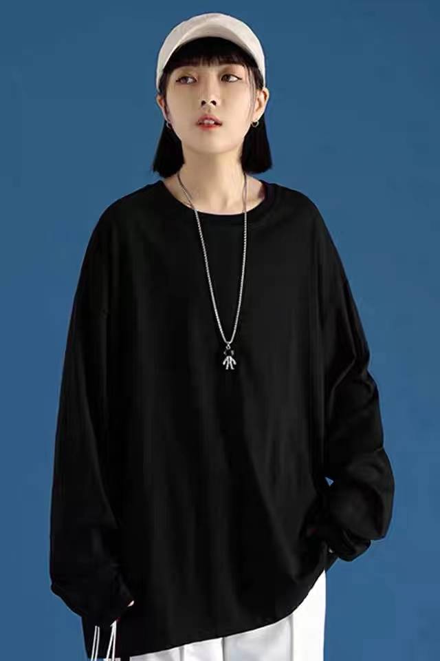 2019早秋新款韩版马卡龙色百搭长袖圆领T恤学生纯色打底衫女